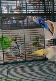 Hi - our names are Peep (Lineolated parakeet) and Kiko (budgie) and Franco (cockatiel). We came to the rescue as a bonded group and should be adopted together. Peep is pale yellow, Kiko is blue and Franco is Pied. The adoption fee for all of us is $250. In our previous home we were used to being uncaged in our own space.